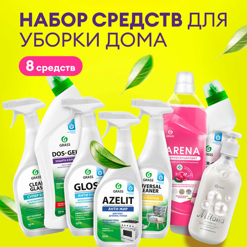 Набор чистящих средств для уборки дома и дачи, 8 предметов от Grass - это идеальный выбор для тех, кто ценит свое время и хочет иметь максимально чистый и гигиеничный дом. Мы понимаем, что уборка является неотъемлемой частью жизни каждого из нас, поэтому мы разработали уникальный набор, который содержит все необходимые средства для эффективной и безопасной уборки. Купив комплект высокоэффективных и экологичных средств, вы надолго забудете о покупке новых флаконов. В состав набора входит: 1) Универсальное чистящее средство Universal Cleaner 600мл - для очистки мягкой мебели, дивана, ковров, обуви, кухонной мебели. 2) Антижир Azelit (Азелит) 600мл. - средство для удаление жира и загрязнений (для кухни и плиты). 3) Чистящее средство Clean Glass 600мл. - отлично подойдет для чистки стекол, окон, зеркал, экранов. 4) Чистящее средство Gloss 600мл - поможет избавиться от известкового налета, ржавчины и плесени, для ванных комнат и душевых кабин. 5) Чистящий гель Dos gel 1000мл. - для сантехники, унитаза, ванны и раковины на основе активного хлора 6) Моющее средство для мытья полов Arena "Цветущий лотос" 1 л - предназначено для очистки и ухода различных моющихся поверхностей пола, стен и др. 7) Жидкое мыло для рук Milana "Жемчужное" 500 мл. 8) Средство для чистки труб от засоров Digger Gel 1000 мл - антизасор устраняет пробки, волосы (волососгон), остатки пищи и прочие загрязнения по всей длине трубы, даже в самых труднодоступных местах канализационных стоков. Позволит избавиться от неприятного запаха, убивая вредоносные бактерии и микробы, обладает дезинфицирующим эффектом. Все чистящие средства в наборе эффективно очищают поверхности, защищая от вредоносных бактерий, придавая покрытиям приятный аромат и блеск. Набор гарантирует максимальную гигиену в вашем доме. Бытовая химия GRASS - это незаменимые помощники в деле любой уборки. Мы рекомендуем выбирать качественные чистящие и моющие средства от магазина Грасс, заботясь о вашем здоровье и окружающей среде.