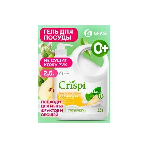 Средство гель - бальзам для мытья посуды, овощей и фруктов Grass Crispi 2,5л с соком груши и экстрактом базилика