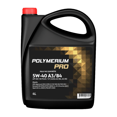 Всесезонное, полностью HC синтетическое моторное масло POLYMERIUM PRO 5W-40 A3/B4 API SN с качественной базой и насыщенным пакетом присадок для уменьшения трения и повышения моющих и диспергирующих свойств масла, обладающее высоким индексом вязкости и топливной экономичностью.Отличительная особенность линейки моторных масел POLYMERIUM PRO - низкая склонность к угару и самые современные пакеты присадок, направленные на повышенную топливную экономичность и защиту от износа..Повышенная кислотная стойкость к продуктам сгорания.