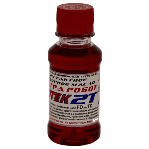 Масло синтетическое Астра Робот-2Т для садовой и мототехники 100 мл тотек 2Т001PET используется для двухтактных бензиновых двигателей с воздушным охлаждением. Рекомендовано для мотоциклов, мотороллеров, снегоходов, лодок, мотоблоков, а также бензопил