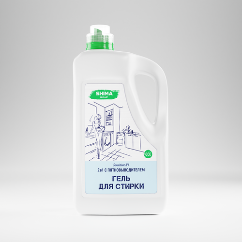 SHIMA гель для стирки SENSITIVE #1 Гель для стирки 2в1 с пятиновыводителем для сильнозагрязненный тканей 5л
