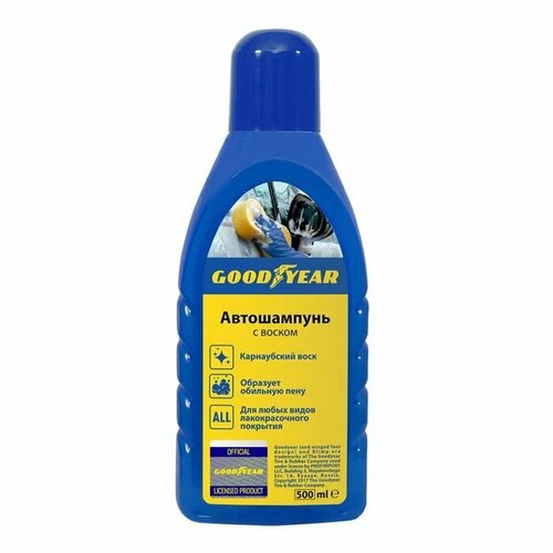 Артикул № 777999 Автошампунь с воском от Goodyear для ручной мойки автомобиля. Применяется для ухода за лакокрасочным покрытием и другими элементами авто. Благодаря особому концентрированному составу с высоким содержанием поверхностно-активных веществ, шампунь легко справляется с самыми стойкими загрязнениями. Средство может применяться на любых видах лакокрасочного покрытия, а также стеклянных, пластиковых и резиновых элементах машины. Автошампунь Goodyear создает обильную пену, которая покрывает всю поверхность автомобиля, предохраняя ЛКП от царапин во время мойки. Легко смывается, не оставляя разводов. Входящий в состав натуральный карнаубский воск, образует на поверхности защитную пленку, которая придает покрытию дополнительный блеск, водоотталкивающие и защитные свойства, заполняет микротрещины ЛКП кузова, предохраняет его от воздействия ультрафиолетового излучения и агрессивных сред, обеспечивает очень быстрое и равномерное высыхание. внимание! Не используйте средство на горячем автомобиле.