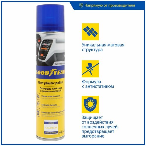 Полироль для пластика GOODYEAR матовый 400 мл, buble gum
