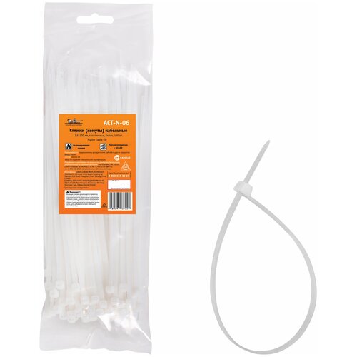Стяжки кабельные из легкого и прочного нейлона нашли свое применение в быту, промышленной индустрии, строительстве, упаковочной отрасли, на транспорте, в электронике и электромонтажных работах. Стяжка для проводов характеризуется простотой и легкостью осуществления монтажных работ, гарантирует надлежащую связку токопроводящих жил без применения профессиональных инструментов. Для производства стяжек используются специальные негорючие полимерные материалы, устойчивые к влияниям механического и атмосферного характера. Устройство замка кабельной стяжки представляет собой головку с фиксатором. На внутренней рабочей поверхности фиксатора расположены пиловидные выступы. При монтаже стяжки ее свободный конец заводится в щель между корпусом головки и фиксатором. При затягивании стяжки ее внутренняя поверхность с зубчатым рельефом входит в зацепление с фиксатором, что обеспечивает ступенчатую затяжку. Обратный ход блокируется храповым механизмом замка. Зубцы, размещенные ниже поверхности ленты, не повреждают закрепляемые предметы и безопасны для изоляции кабелей и проводов. важно знать! При использовании нейлоновых стяжек следует принимать во внимание гигроскопичную природу самого нейлона, т. е. зависимость его свойств от влажности и способности как впитывать, так и терять влагу. В связи с этим, в тех случаях, когда вскрытая упаковка может быть использована через неопределенное время рекомендуется герметично запечатывать пакет для предотвращения пересыхания и сохранения гибкости стяжек. В любом случае, функциональность высохших и ломких стяжек может быть легко восстановлена путем добавления в пакет некоторого количества воды. После того, как кабельные стяжки уже установлены, они будут выполнять свою крепежную функцию вне зависимости от колебаний уровня влажности и температур. Преимущества: - не поддерживают горение; - рабочий температурный диапозон -40/+80; - высококачественный материал; Состав: пластик (нейлон 66)