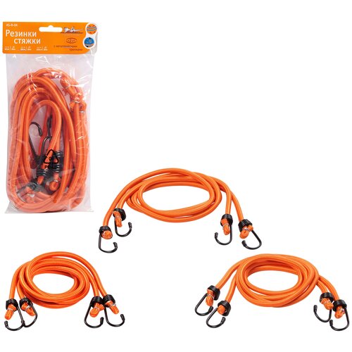 Эластичные резинки предназначены для крепления груза в автомобиле или любом другом месте. Фиксация резинок производится с помощью металлических крючков с пластиковыми наконечниками. В комплекте 6 шт. резинок: 2 шт.-60см, 2шт.-80см, 2шт-100см, D-8 мм. С помощью данного набора резинок можно создать конструкцию в виде сетки, которая будет надежно удерживать груз от перемещения в салоне и багажнике автомобиля. AS-R-04