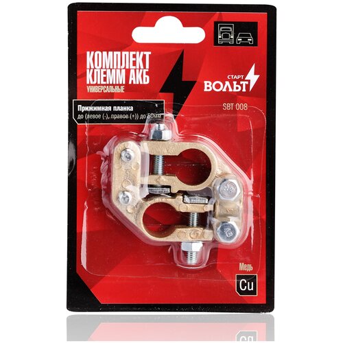 Полный ассортимент клемм АКБ (по материалу, по методу крепления) в блистерной упаковке. Стартвольт - единственный на текущий момент системный поставщик клемм АКБ в России. SBT 008 SBT 008