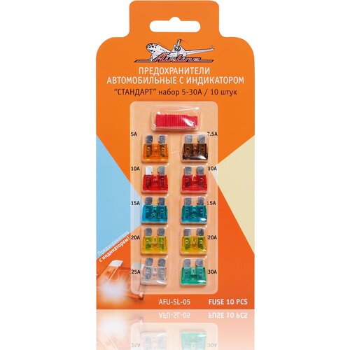 Предохранители "стандарт" с индикатором в блистере с экстрактором (10 шт. 5-30А) AIRLINE