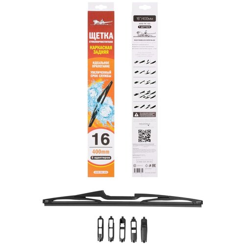 Щетка стеклоочистителя 400 мм (16") задняя каркасная, 5 адаптеров AIRLINE