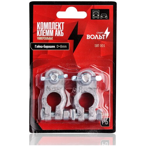 Клеммы АКБ в комплекте, свинец, гайка-барашек 8 мм, StartVolt
