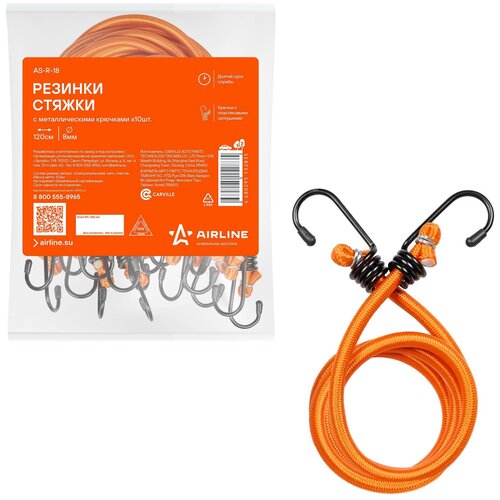- Наименование товара: Резинки-стяжки, набор 10 шт., 120 см, D-8 мм (металлические крючки), AIRLINE.