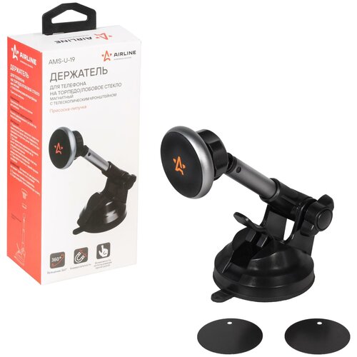 Держатель для телефона на торпедо/лоб. стекло магнитный с телескоп. кроншт. AIRLINE