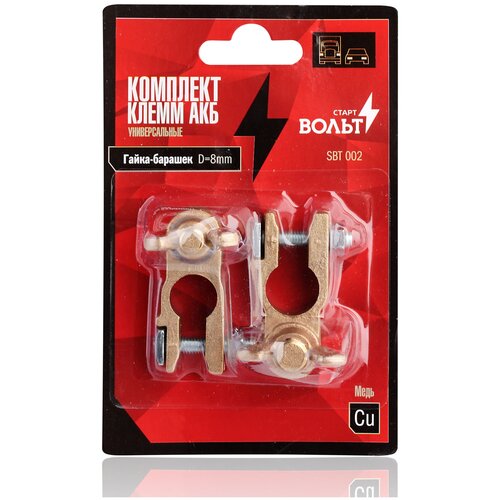 Описание: полный ассортимент клемм АКБ (по материалу, по методу крепления) в блистерной упаковке. Стартвольт — единственный на текущий момент системный поставщик клемм АКБ в России.