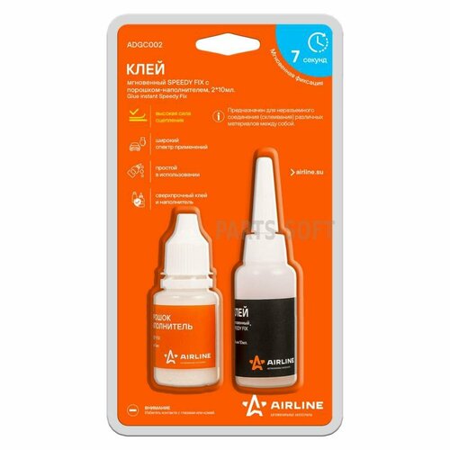 Производитель: AIRLINE Артикул (номер детали): ADGC002 Клей мгновенный SPEEDY FIXСвечи, диски, пружины, лампочки - цена за штуку, не за комплект. Шланги, трубки и т. п. цена за метрЗамены: