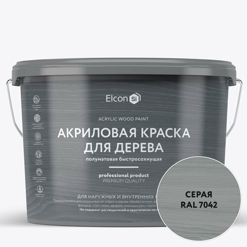 Краска для дерева акриловая Elcon серая RAL 7042 9 л