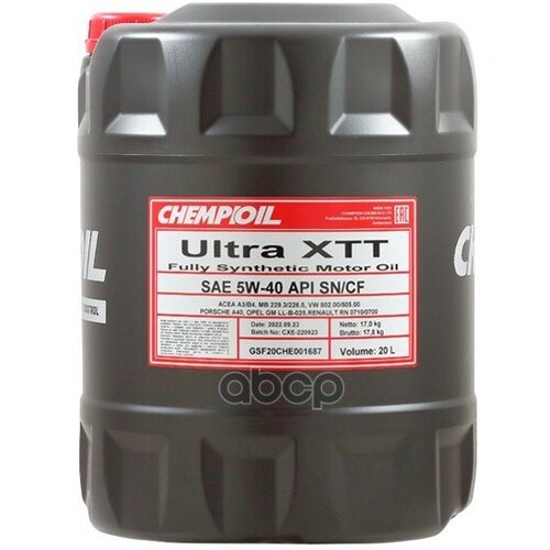 CHEMPIOIL CH970120E 5W-40 Ultra XTT SN/CF, A3/B4, 20л (синт. мотор. масло)