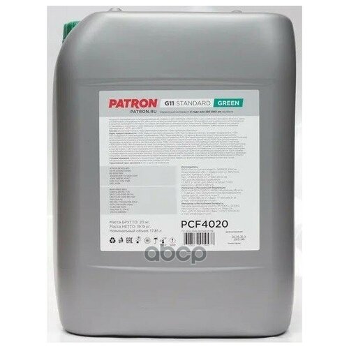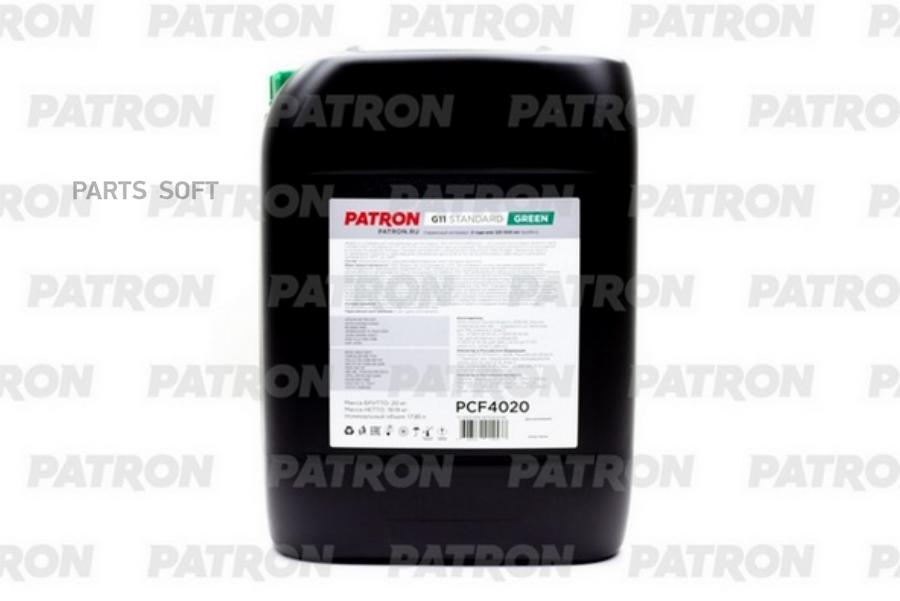 PATRON PCF4020 Антифриз 20кг (17.85л) - зеленый готовый, PATRON GREEN G11, TL 774-C, SAE J1034, N600690, MS-7170, MAN 324 NF, MB 325.0, B0400240, 6901599, 1286083