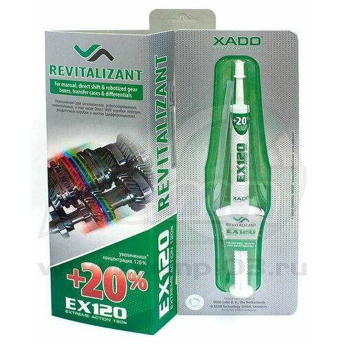 Ревитализант XADO Revitalizant EX120 для КПП и редукторовУсиленный ревитализант.Предназначен для защиты от износа и восстановительного ремонта агрегатов механических трансмиссий.Благодаря на 20% большей* концентрации активного вещества обладает расширенным запасом по восстановлению изношенных поверхностей и их защите от износа.*по отношению к продукту ХАDO гель-ревитализант для КПП и редукторов.Во время обработки агрегатов механической трансмиссии формирует на поверхностях ее шестерен, валов, подшипников, синхронизаторов и других металлических деталей металлокерамическое покрытие. В результате восстанавливается геометрия деталей.Ревитализант универсален для механических, роботизированных, секвентальных, в том числе Direct Shift коробок перемены передач, раздаточных коробок, мостов (дифференциалов).устраняет раковины и царапины на рабочих поверхностях;оптимизирует пятна контакта в зацеплениях шестерен;обеспечивает значительную экономию топлива (особенно на полноприводных автомобилях);снижает шум и вибрации узлов в 10 раз;повышает четкость переключения передач;улучшает четкость работы синхронизаторов;при аварийной утечке масла позволяет длительно (до 1000 км пробега) безопасно эксплуатировать узлы трансмиссии. Порядок применения:Содержимое шприца внести в маслозаливное (маслоизмерительное) отверстие КПП, раздаточной коробки или редуктора моста (см. таблицу).Примечания:Ревитализация считается законченной через 50 ч работы механизма (1500 км пробега).Характерным признаком начала ревитализации является уменьшение шумности в работе механизма уже с первых километров пробега после обработки. Если улучшение работы механизма в какой-то момент прекратилось, это может свидетельствовать о его сильном износе – необходимо удвоить рекомендованную дозировку. Если спустя 100-200 км пробега улучшение в работе механизма наступает, то наиболее вероятной причиной этого является ошибочная диагностика.Ревитализант совместим со всеми типами масел для механических трансмиссий. Не вступает с ними в химические реакции и не изменяет их вязкостных, и других физико-химических свойств.Защитное металлокерамическое покрытие формируется на любом работоспособном механизме, однако, если агрегат находится в критическом состоянии (износ 100%), необходимо заменить разрушенные детали.