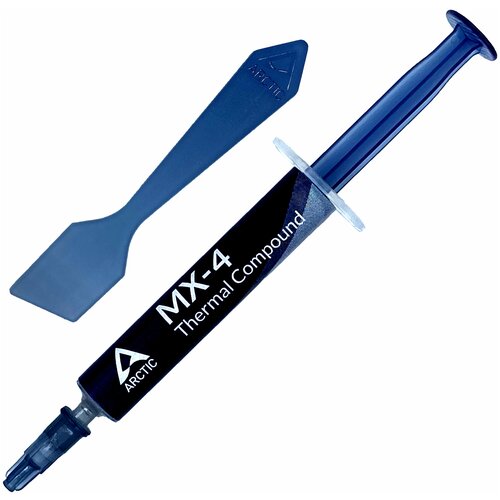 Высокоэффективная термопаста ARCTIC MX-4 4 грамма шпатель в комплекте. Термопаста Arctic Cooling MX-4 обладает высоким уровнем эффективности, который достаточен для обеспечения качества отвода тепла с поверхности корпусов процессоров, установленных в мощных игровых компьютерах. Теплопроводность аксессуара составляет 8,5 Вт/(м·К). Это очень значительный показатель. Даже в значительной степени разогнанный процессор (при наличии кулера соответствующего уровня) будет функционировать в нужном температурном режиме. Термопаста Arctic Cooling MX-4 поставляется в шприце. Такой тип фасовки обеспечивает удобство нанесения пасты. Масса термопасты – 4 г. Рабочая температура изделия варьируется в пределах от -50 до 160 °C. Для удобства нанесения в комплекте имеется шпатель. Высокая эффективность Подходит для геймеров и оверклокеров Непроводящая Безъемкостная