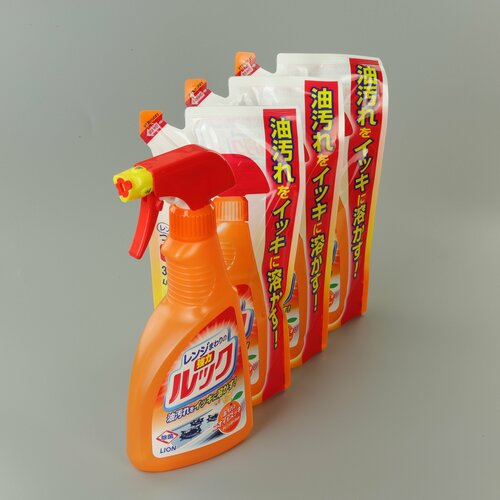 LION Набор Японских чистящих средств для плиты Look, бутылка 400 мл и 3 запасных блока 350 мл