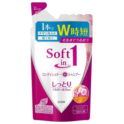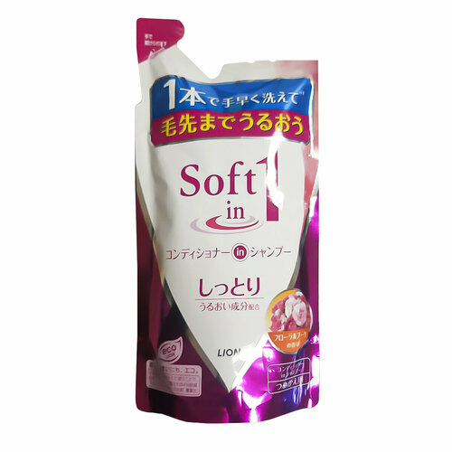 169604 Lion Soft in 1 Смягчающий шампунь-кондиционер, с экстрактом морских водорослей , с медовым ароматом, (сменная упаковка) 380 мл