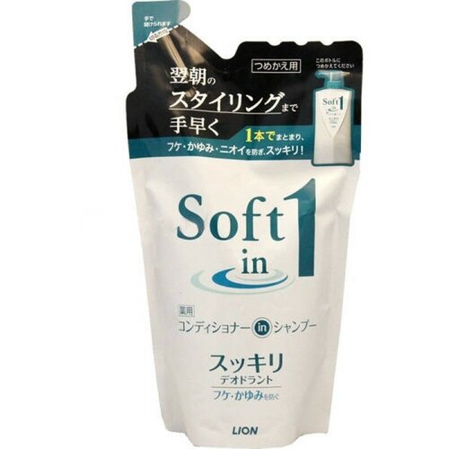 169659 Lion Soft in 1 Шампунь-кондиционер 2 в 1, против перхоти, зуда, с эффектом свежести (сменная упаковка), 370 мл