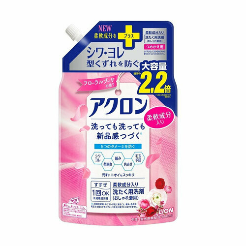 Жидкость для стирки LION Akron для деликатных тканей с цветочным ароматом, 850 мл