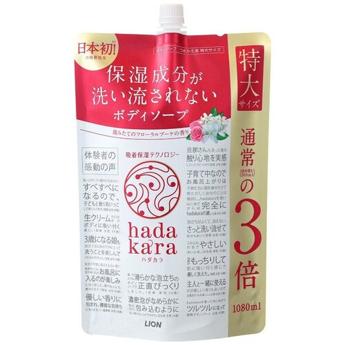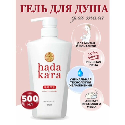 LION Мыло для тела Hadakara с цветочным ароматом, 500 мл.