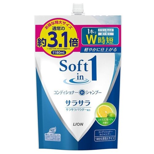 Шампунь-кондиционер 2 в 1 Lion Soft in 1 сияние и гладкость, запасной блок, 1180 мл