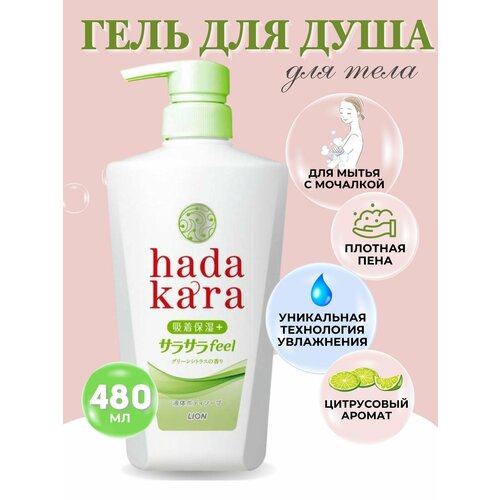 Увлажняющее жидкое мыло для тела "Hadakara" с ароматом зелёных фруктов (для жирной кожи), LION 480 мл флакон