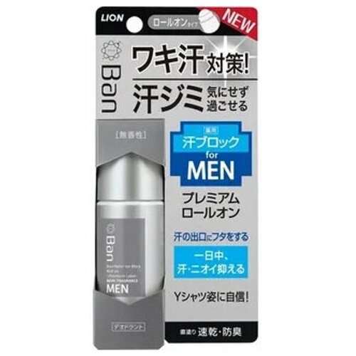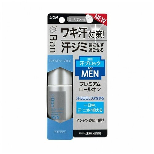 Lion Мужской роликовый дезодорант-антиперспирант Ban блокирующий потоотделение, ионный, аромат мыла, 40 мл