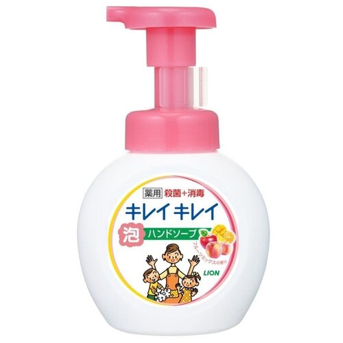 Lion Мыло-пенка для рук KireiKirei 500 млЖидкое мыло-пенка для рук подходит для детей и взрослых. Антибактериальный компонент IPMP удаляет вирусы и бактерии и сохраняет защитную функции кожи. Пышная пенка тщательно удаляет загрязнения и легко смывается, не оставляя ощущения скользких рук. Ионы цинка, входящие в состав антибактериальной обработки носика-дозатора, активируются водой, прикрепляются к отрицательно заряженным бактериям и не дают им размножаться. Лёгкий фруктово-цитрусовый аромат, исчезающий после смывания.
