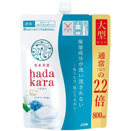 Увлажняющее жидкое мыло для тела с ароматом дорогого мыла LION Hadakara (мягкая упаковка с крышкой) 800 мл