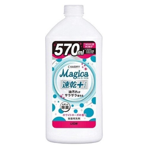 Lion Charmy Magica+ Концентрированное средство для мытья посуды с нежным ароматом роз (сменная упаковка) 570 мл