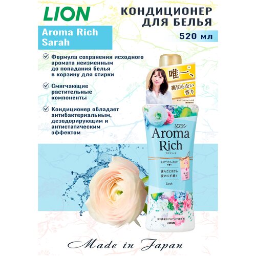 LION Кондиционер для белья длительного действия "Aroma Rich Sarah", аромат унисекс, 520 мл