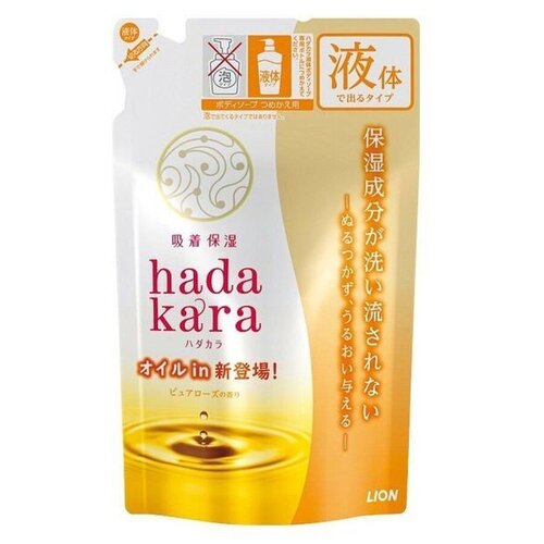 LION Экстра-увлажняющее жидкое мыло для тела с ароматом безупречной розы "Hadakara" (мягкая упаковка) 340 мл