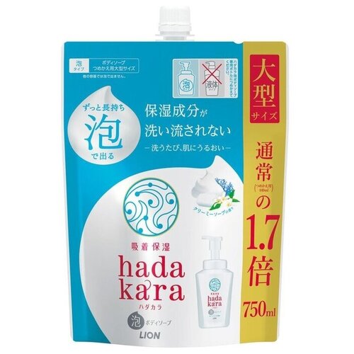 LION Бархатное увлажняющее мыло-пенка для тела с ароматом кремового мыла Hadakara 750 мл (мягкая упаковка с крышкой)