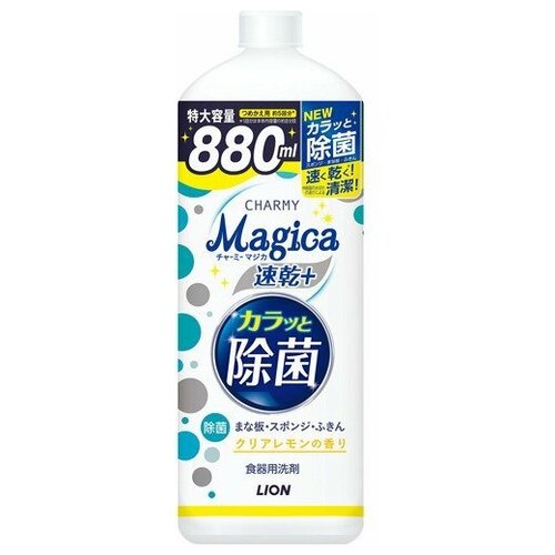 "Lion Charmy Magica+ Концентрированное средство для мытья посуды, аромат лимона, сменная упаковка, 880 мл"