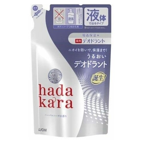 LION Жидкое мыло для тела Hadakara аромат цветов, увлажняющее, сменная упаковка 360 мл