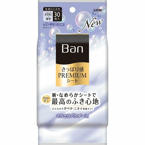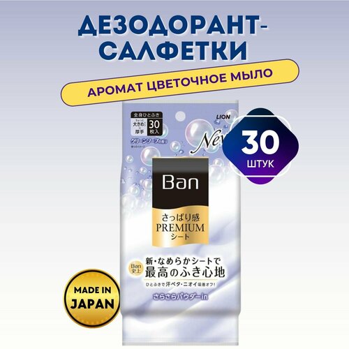 LION Дезодорант для всего тела в форме салфеток "Ban Premium Refresh Shower Sheets" (с пудрой, аромат Цветочное мыло) 30 шт