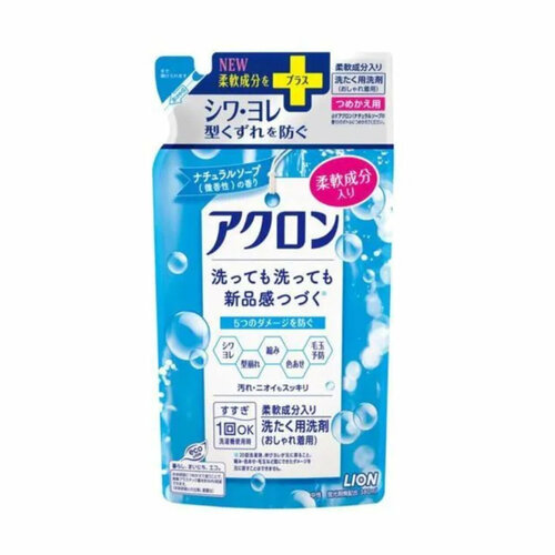 LION Жидкое средство "Akron" для стирки деликатных тканей «Аромат нежного мыла», 380мл