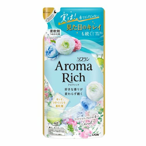 LION Кондиционер для белья Сара формула сохранения неизменного аромата и красоты тканей / с натуральными маслами Aroma Rich Sarah 380 мл, мягкая упаковка