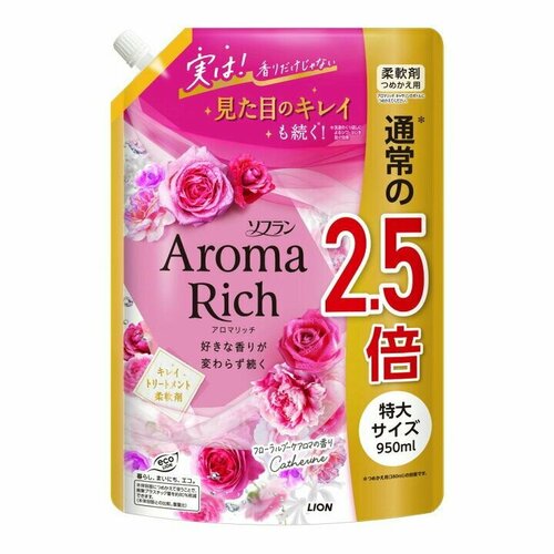 LION Кондиционер для белья Кэтрин формула сохранения неизменного аромата и красоты тканей / с натуральными маслами Aroma Rich Catherine 950 мл, мягкая упаковка с крышкой