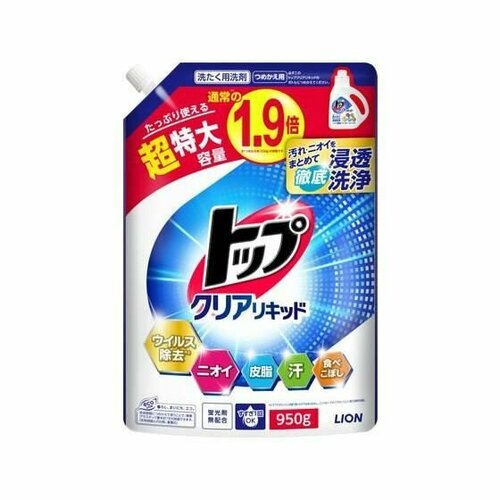 Средство жидкое для стирки Lion TOP Clear Liquid-сила ферментов, цветочный аромат, сменная упаковка 950гр
