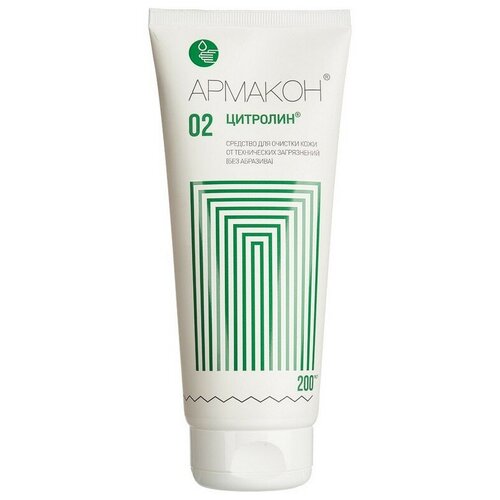 Очищающий гель Армакон Цитролин представляет собой средство для очистки кожи от технических загрязнений, не содержит абразива и позволяет легко удалить загрязнения технического характера (нефтепродуктов, масел, копоти, жира, угольной, графитовой, металлической пыли) с кожи рук. Благодаря комбинации мягких и безопасных ПАВ, средство наносится эффективно очищает кожу, не травмируя ее. Содержит инактиваторы, нейтрализующие вредное воздействие солей тяжелых металлов и химических раздражителей. Эффективность подтверждена научными исследованиями. Эффективно в воде любой жесткости; возможно применение без воды. Применим повсеместно при работах в условиях сильного загрязнения трудноудаляемыми материалами для обеспечения эффективной, бережной очистки кожи. Широко используется в машиностроении, железнодорожном транспорте, добыче полезных ископаемых (угля, нефти, газа, руды и т. д.), автотранспортных предприятиях, химическом производстве и так далее. С помощью средства цитролинr возможна эффективная очистка кожи без использования воды, достаточно удалить грязь салфеткой или ветошью. Средство подходит для частого использования. Обладает приятным ароматом. В состав включены увлажняющие и ухаживающие компоненты (олеиновая кислота, пропилен гликоль, ланолин). Не содержит растворителей, щелочей, абразивов, красителей, парабенов. Не добавляя воды нанести на руки небольшое количество (1-2 мл.) средства Цитролин. Хорошо втереть в течение 20 секунд, уделяя Особое внимание местам, где грязь въелась в кожу. Добавить небольшое количество воды (4-5 мл) и снова растереть в течение 20 секунд. Смыть водой или удалить загрязнения ветошью. Соответствует ТР ТС 019/2011, ГОСТ 31696-2012 Упаковка: туба 200 мл. Условия хранения: избегать попадания прямых солнечных лучей. Срок годности от даты изготовления 24 месяца. Внимание! Произошло изменение дизайна упаковок производителем. В связи с этим изображения товаров на фотографиях, представленных на сайте, могут отличаться. Дизайн упаковки представлен в двух вариантах без возможности выбора.
