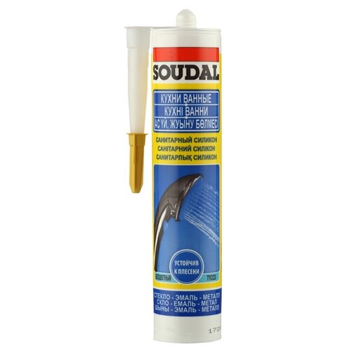 Силикон c кислотным отвердением и повышенной стойкостью к воздействию влаги, грибка и плесени - для затирки и заделки швов керамических материалов, стекла и некоторых металлов. Свойства:- Длительная стойкость к воздействию влаги, грибка и плесени;- Отличная липкость к распространенным санитарно-техническим материалам - стеклу, керамике и глазурованной поверхности, а также бетону и кирпичу, дереву и некоторым металлам;- После отвердения - эластичный и стойкий к атмосферным осадкам. Применение:- Герметизация раковин, ванн и эмалированных душевых поддонов;- Герметизация между раковиной и стеной, вокруг раковин и керамических цоколей;- Заполнение швов керамической плитки в соединениях между стенами и полом;- Все эластичные уплотнения в помещениях с повышенной влажностью - кухнях, ванных и прачечных;- Уплотнения, подвергающиеся воздействию влаги в холодильных камерах и вентиляционных устройствах;- Срочные стекольные работы (рамы из неокрашенной древесины или окрашенные масляными красками). Из-за кислой реакции может вступать во взаимодействие с некоторыми металлами. Не применять к пластмассам. Герметик силиконовый санитарный SOUDAL прозрачный 280мл 105897 Герметик силиконовый санитарный SOUDAL прозрачный 280мл 105897