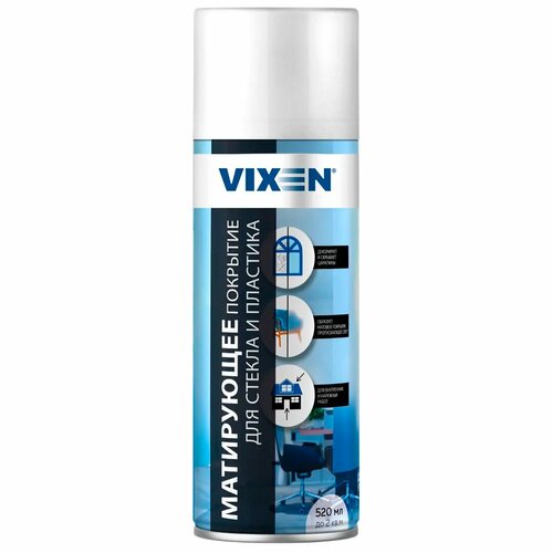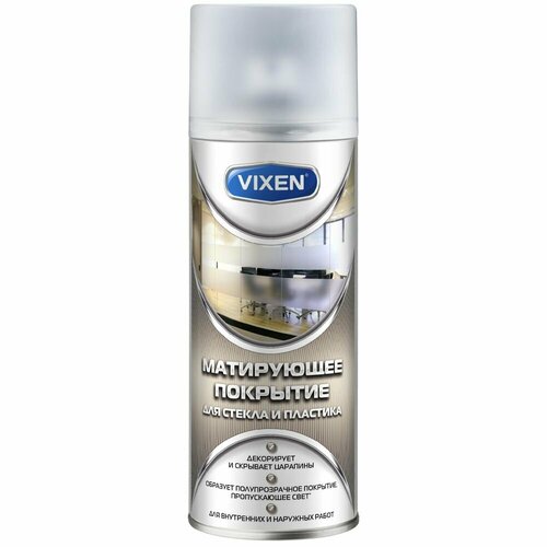 Матирующее покрытие Vixen применяется для стекла и пластика. Оно предназначено для скрывания и маскировки дефектов шероховатых стен, оконных проемов, пластиковых панелей. Основное назначение средства — декорирование различных предметов интерьера: окон, дверей, перегородок в домах, офисах, душевых кабинках, общественных местах.Преимущества:образует полупрозрачное матовое белое бархатистое покрытие, пропускающее свет;поставляется в удобном для использования баллончике объем 520 мл;применяется для ведения внутренних и наружных отделочных работ;отличается хорошей адгезией к поверхностям;выдерживает перепады температуры, не трескается со временем;равномерно наносится на поверхность и эффективно ложится даже на неровные профили;перед применением поверхность очищается от загрязнений и пятен, а баллончик встряхивается 2-3 минуты;если использовать трафареты и матирующее покрытие Vixen, можно добиться уникального дизайна в интерьере.Марка: VIXENЦвет: БелыйСтрана производства: РоссияПредназначен для: СтенаЗапах: С запахомТип упаковки: АэрозольМатериал поверхности применения: Мультикомпонентный материалВремя полного высыхания (ч): 48Тип продукта: Эмалевая аэрозольная краскаНазначение: Детская комнатаВес, кг: 0.371Эффект: Матовое стеклоЦветовая палитра: БелыйТип ЛКМ: На основе растворителяРасход (м²/л или м²/кг): 2-4 м Кв