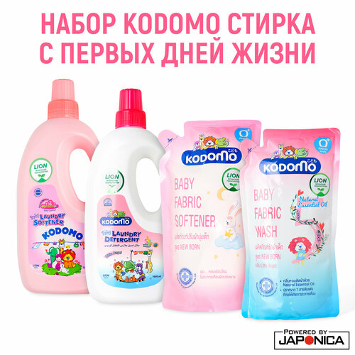 В набор Lion Kodomo стирка с первых дней жизни входят:LION Kodomo Гель для стирки детского белья "Маленький ангел" 1000 млLION Kodomo Гель для стирки детского белья "Маленький ангел" 600 млLION Kodomo Кондиционер для стирки детского белья "Маленький ангел", 600 млLION Kodomo Кондиционер для стирки детского белья "Маленький ангел", 1000 мл