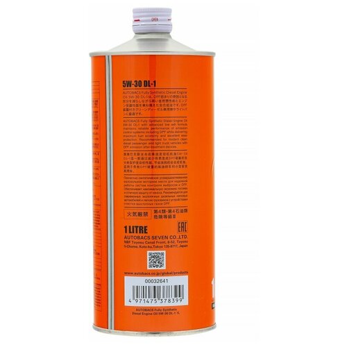 Код товара для заказа: FE909;Артикул: A00032641;Бренд: AUTOBACS;основные характеристики:Состав: синтетическое;Тип двигателя: для дизельного двигателя;Вязкость по SAE: 5w30;спецификации И допуски:Класс по JASO: DL-1;общие характеристики:Объём: 1;Масло моторное Autobacs Engine Oil 5w30 JASO DL-1Полностью синтетическое усовершенствованное малозольное моторное масло для надежной работы систем контроля выбросов и DPF. Обеспечивает максимальную экономию топлива и отличную защиту от износа. Рекомендуется для современных экологичных дизельных легковых автомобилей и легких грузовиков с устройствами очистки выхлопных газов DPF (сажевым фильтром).Преимущества• Защищает сажевый фильтр для долговечности и производительности выхлопной системы;• Превосходная термическая и окислительная стабильность защищает от отложений, обеспечивая нормальную работу двигателя;• Превосходная защита от износа способствует увеличению срока службы двигателя;• Снижает расход топлива;Физико-химические свойстваВязкость при 100°C, мм²/с: 10,75Вязкость при 40°C, мм²/с: 57,61Индекс вязкости: 180Щелочное число TBN, мгKOH/г: 3,87Температура вспышки, °С: 220Плотность при 15°C, г/см³: 0.8504Вязкость динамическая CCS -30°C, мПа*с: 4800Температура застывания, °С: -42.5Спецификации• JASO DL-1;