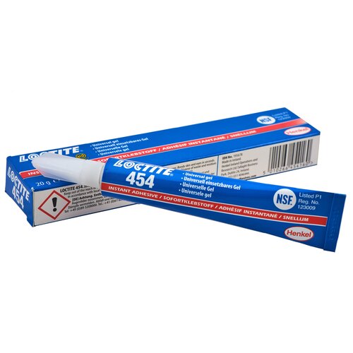 LOCTITE 454 — моментальный клей, разработанный для соединения трудно склеиваемых материалов, требующих равномерного распределения напряжений, высокую прочность на растяжение и / или сдвиг.LOCTITE 454 обеспечивает быстрое склеивание многих материалов, включая металлы, пластмассу и эластомеры. Благодаря гелевой консистенции клей может наноситься на потолочные и вертикальные поверхности. LOCTITE 454 также может быть применен для склеивания пористых материалов, таких как дерево, бумага, кожа и ткани. Идеально подходит для быстрых ремонтных работ.Преимущества:Универсальный моментальный адгезивный гельНе растекаетсяОтсутствие капиллярного затекания, особенно подходит для пористых материаловИдеально подходит для быстрого ремонтаИдеально подходит для нанесения на потолочные и вертикальные поверхностиСклеивает однородные и разнородные основы из дерева, металла, керамики и большинства пластмасс