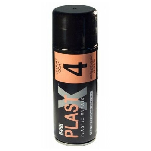 U-POL PLAS/4F текстурное покрытие черное мелкое, спрей 400 мл применяется для восстановления оригинальной текстуры пластиковых деталей автомобилей. Наносится текстурное покрытие на обезжиренную загрунтованную поверхность со снятым глянцем. Сверху текстурное покрытие может быть окрашено любыми автомобильными красками. Перед использование баллончик хорошо встряхивать в течении 2-х минут. Наносить в 2-3 слоя с межслоевой выдержкой 3-5 минут. Время сушки 20 мин.
